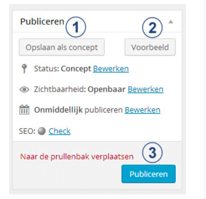 Wanneer je klaar bent met het schrijven van je bericht, klik je op de knop ‘publiceren’ in de rechterbovenhoek van de pagina. Als je het bericht later wilt publiceren, kun je ook de optie ‘voorvertoning’ kiezen en het bericht opslaan als concept.