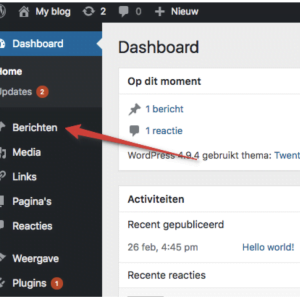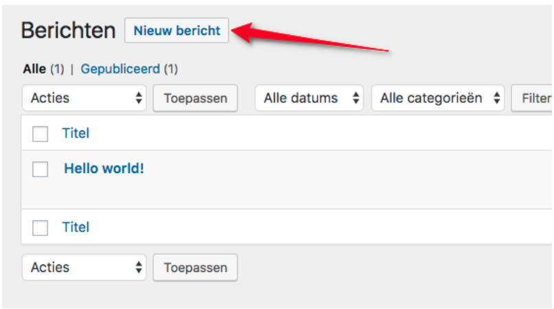 Om een nieuwe post toe te voegen, klik je op de knop ‘nieuw bericht’ bovenaan de pagina of onder ‘berichten’ in het linkermenu.
